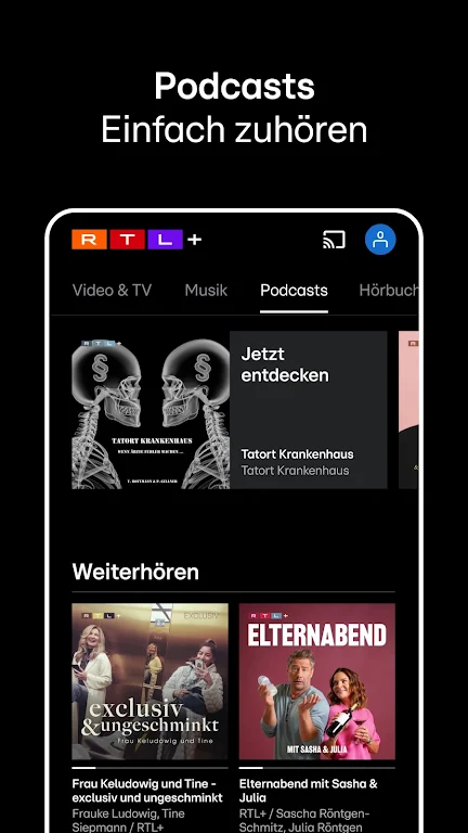 RTL+ offers an all-in-one entertainment experience with access to over 2,000 series, reality shows, live sports, movies, music, audiobooks, podcasts, and magazines. Whether you're a fan of exclusive RTL+ Originals or want to watch the latest live sports events, RTL+ has something for everyone. Get started with RTL+ Max and enjoy an ad-free, unlimited streaming experience, plus much more!