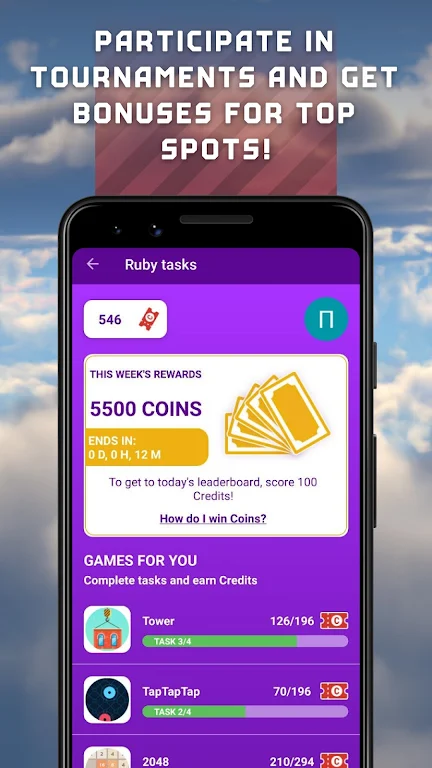 Tap the big button at the bottom of the screen to access challenge sections and start earning instantly. Enjoy tons of bonuses with sections updated every day, including adverts, app downloads, and competitive mini-game tournaments. Compete with other players, climb the leaderboard, and unlock valuable rewards in this daily bonus rewards app.