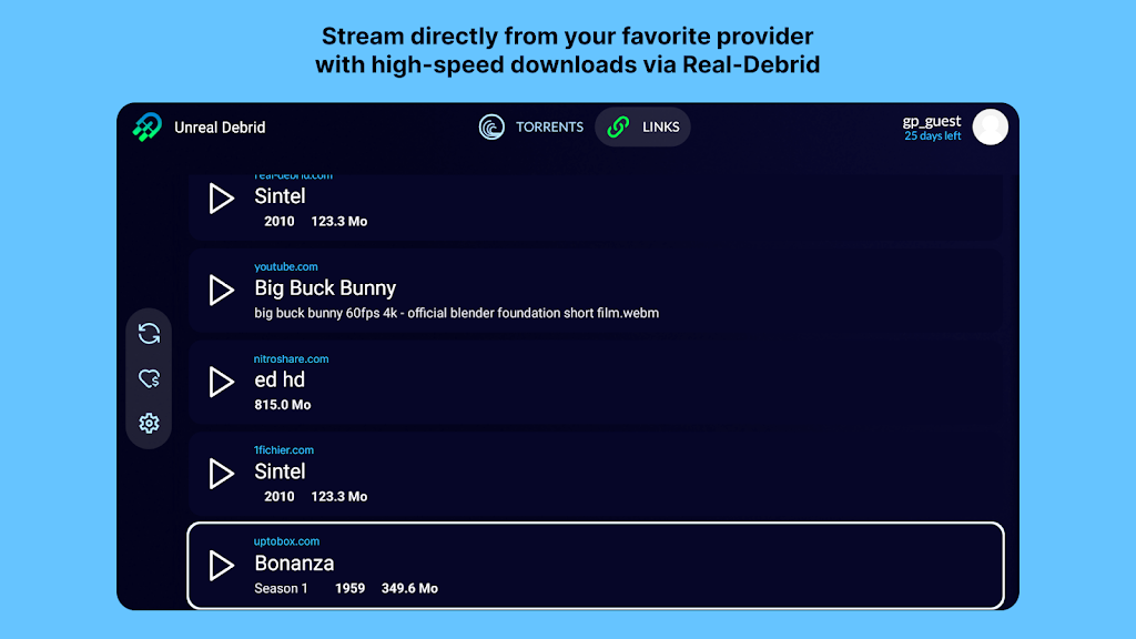 Say goodbye to buffering and enjoy HD-quality torrents directly from the source with Real-Debrid. The easy-to-use interface and support for various video players make this app a perfect choice for the whole family. Explore a world of unlimited content with detailed descriptions, episode tracking, and much more.