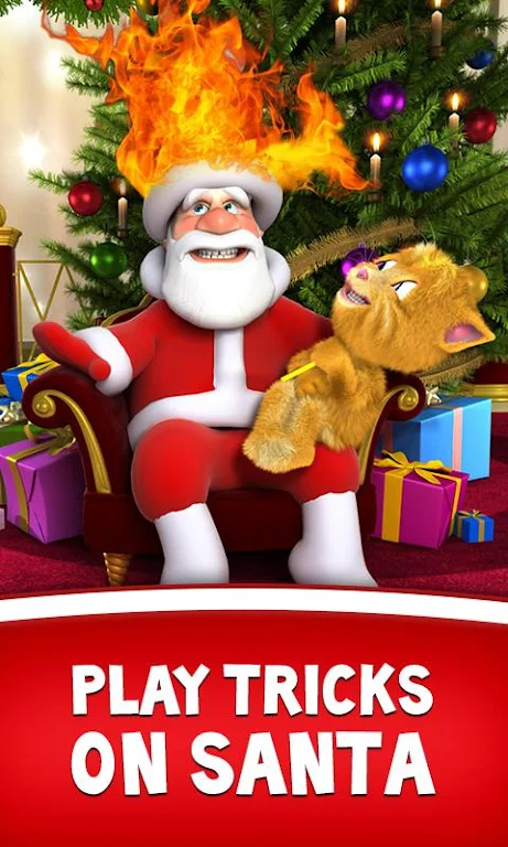 ✔ Press the cat paw button to watch Ginger annoy Santa in different funny ways.