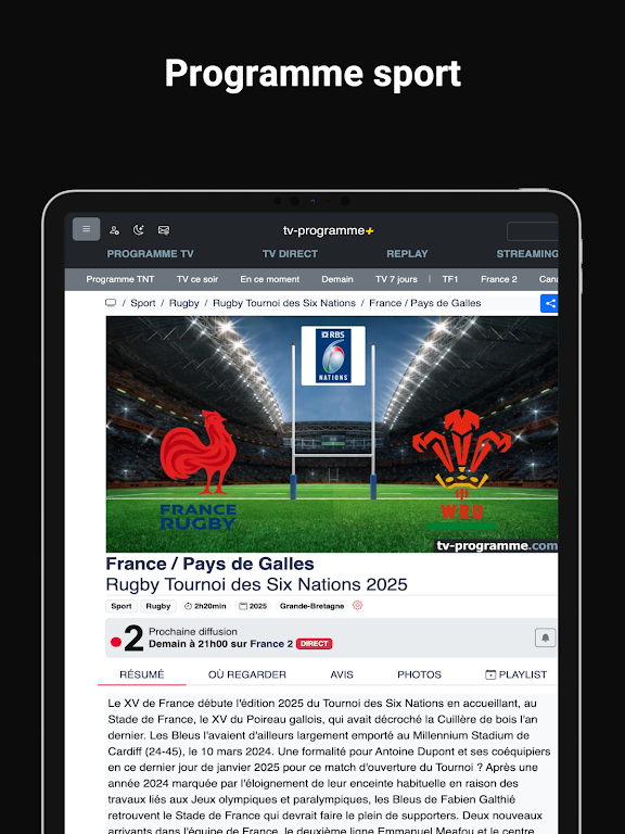 tv-programme.com is your one-stop solution for accessing comprehensive TV schedules across 100 channels, including TNT, Box, Cable-Sat, and more, over the next two weeks. Whether you’re looking for sports, movies, TV shows, or documentaries, you’ll find clear and detailed program listings with synopses, reviews, trailers, and much more.