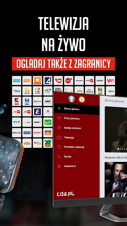 Discover the ultimate entertainment hub with CDA Premium, where you can stream movies, TV shows, and access live TV channels on your smartphone. With over 90 channels, including TVP, TVP 2, Polsat, TV4, Telewizja WP, BBC, History, Zoom, Filmbox, and many more, you’ll never run out of content to watch. Whether you’re into movies, live TV, or exclusive series, CDA Premium has something for everyone.
