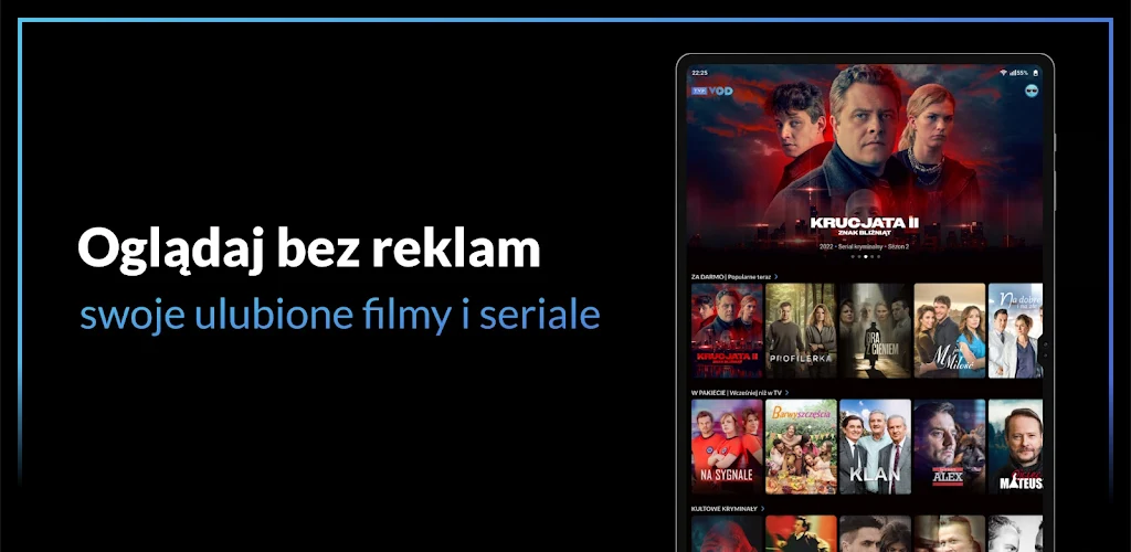 TVP VOD brings you a world of entertainment, offering entire seasons, pre-premiere episodes, and exclusive content that you won’t find anywhere else. Dive into your favorite Polish series like "M jak miłość" and "Na Signale", or explore international hits such as "Knives Out", "John Wick", and "1917". Enjoy a vast library of award-winning films, TV series, documentaries, and unforgettable classics—all in one place.