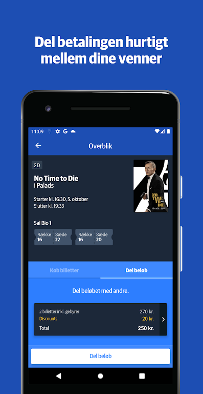 Plan your movie nights with friends and share the cost effortlessly. With the new split payment feature, you can send your friends a payment link directly in the app to cover their share. Stay organized with an overview of all tickets, including who has paid and who hasn't, all in one place.