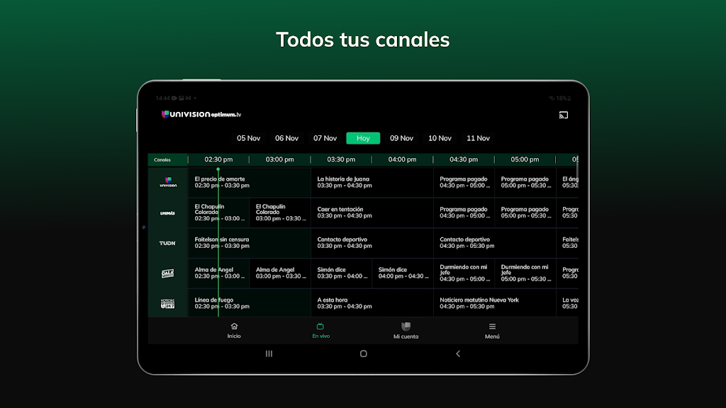 Catch up on the latest novelas, sports, news, and more. Univision offers a range of options, from current and classic novelas to exclusive live sports events like Liga MX and UEFA Champions League. Never miss a moment with our on-demand service that lets you watch shows up to 24 hours after airing. For the ultimate viewing experience, sign in with your TV provider and get unlimited access to live and on-demand content.