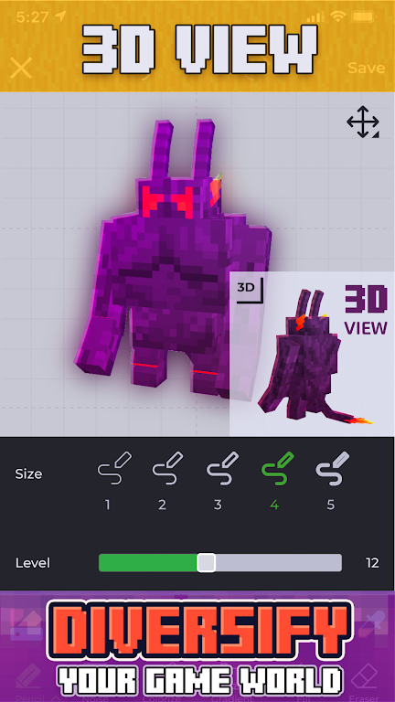 **Skins Creator & Editor**: Show off your unique style with Crafty Craft’s advanced skin editor. Create stunning 128x128 skins in 2D and 3D, from anime heroes to mythical beasts. Whether you want to design your favorite character or invent something completely new, our skin tool lets you express yourself in the most creative ways.