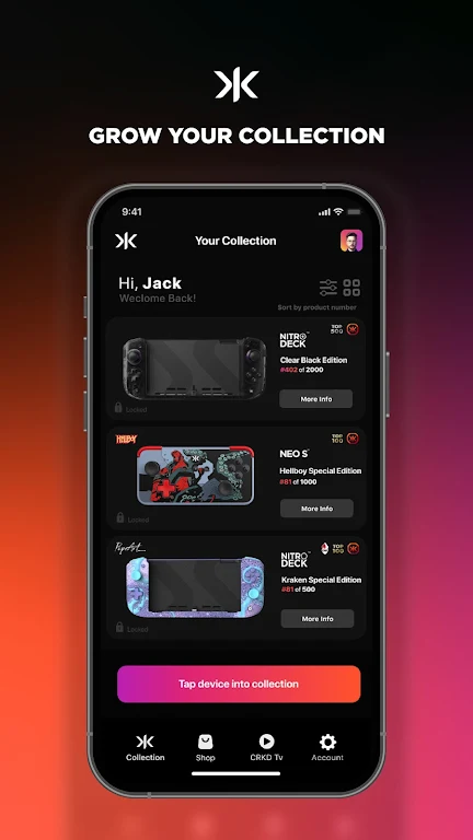 Welcome to the CRKD app, your ultimate companion for CRKD premium gaming gear. Whether you're an avid gamer or a collector, this app brings you closer to our exclusive products and keeps you updated with the latest releases, offers, and much more. Dive into a world of surprises, excitement, and top-tier gaming accessories with CRKD!