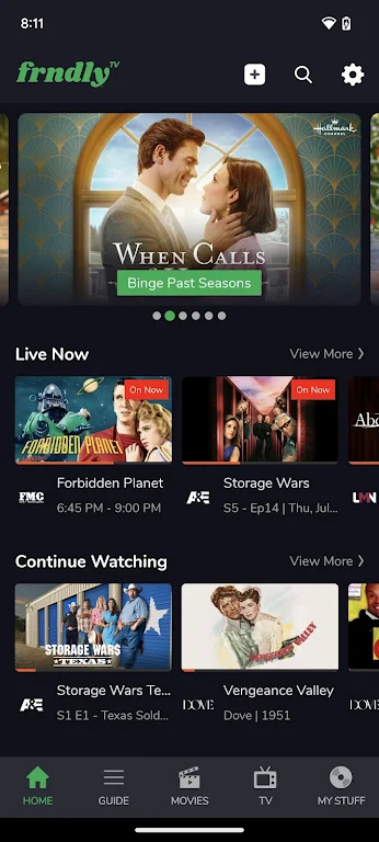 Watch 50+ channels including MeTV Toons, A&E, Hallmark Channel, INSP, Lifetime, Hallmark Mystery, Game Show Network, LMN, FETV, The Weather Channel, Hallmark Family, Court TV, UPtv, FYI, Great American Family, Justice Central, PixL, Outdoor Channel, Bounce, Dove Channel, getTV, BYUtv, Great American Faith & Living, MILITARY HISTORY, Pursuit Channel, Vice, Local Now, MeTV, QVC, FMC, Story Television, Dove Spirit of the Heart Land, Heroes & Icons, Western Bound, Start TV, Laff, Catchy Comedy, Dove Family Movies, Crime & Investigation, ION, ION Mystery, GRIT, Movies!, MeTV+, aspireTV, Dabl, ION Plus, CraftsyTV, Tastemade, Stingray Channel Holidayscapes, Stingray Greatest Hits, Stingray Flashback 70s, Stingray Remember the 80s, Stingray Hot Country, Stingray Classic Rock, theGRIO, REELZ, CLEO TV, MovieSphere Gold and EnvoyTV.