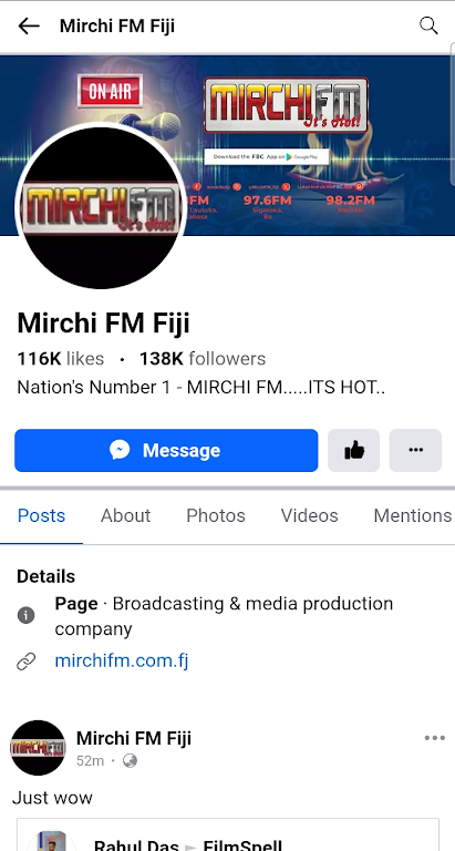 Mirchi FM is Fiji’s first Hindi FM radio station and is operated by Fiji Broadcasting Corporation, the media group behind FBC TV, Radio Fiji One, Radio Fiji Two, Bula FM, 2day FM-Fiji, and Gold FM-Fiji. With decades of experience, the station delivers trusted live radio streaming and local entertainment.