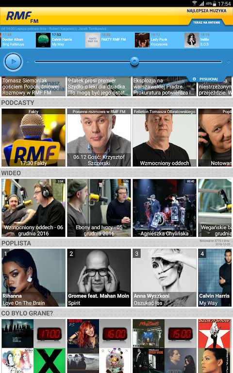 RMF FM Radio is the most listened to radio station in Poland, delivering modern media technology and world-class solutions. Our FM radio signal is available via over 50 terrestrial transmitters, satellite platforms, cable networks, and online radio streaming.