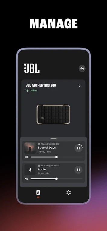 The official JBL One app provides seamless setup and control for your JBL Wi-Fi speakers, soundbars, and PartyBox products. Connect to Wi-Fi, adjust the EQ, and manage all compatible devices with a single, user-friendly app. Whether you're fine-tuning audio settings or enjoying your favorite songs, the JBL One app offers an enhanced, personalized listening experience.