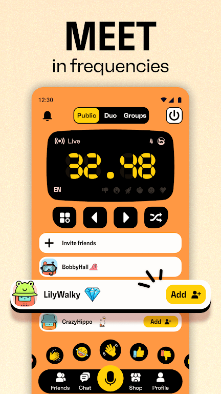 With over 1 million frequencies to explore, you can connect with strangers who share your interests, speak in different languages, and enjoy a diverse range of discussions. No pressure, no judgment—just real conversations and fun interactions. Step into a world of limitless possibilities and push-to-talk now!