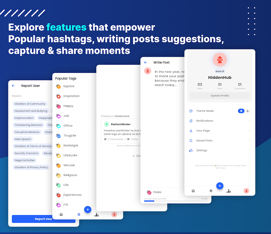 Welcome to HiddenHub, the ultimate destination for users seeking a peaceful, anonymous space to connect without the chaos of notifications, ads, or privacy concerns. Proudly made in India, HiddenHub is designed for individuals who value simplicity, privacy, and genuine interaction. Join a community where authenticity thrives, and your voice is heard without judgment.