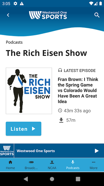 Never miss a moment of the action with Westwood One Sports. Get live play-by-play coverage, game day highlights, national and local sports talk, and podcasts featuring the biggest names in sports. Whether you're a fan of NFL, NCAA March Madness, College Football, College Basketball, Men’s and Women’s College World Series, NCAA Men’s Lacrosse Championship, or major events like the U.S. Soccer and Golf’s Majors, our app brings you closer to the game with immersive audio experiences.