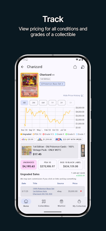 Check detailed pricing for every condition, from ungraded to PSA 10, and browse historical sales updated daily. Track your personal collection, monitor profit over time, and maintain a smart wishlist that alerts you when items appear below market value. Explore deep sales trends and make informed buying and selling decisions using real transaction data—perfect for collectors seeking investment tracking, card value scanners, or comprehensive game price charts.