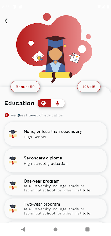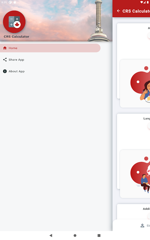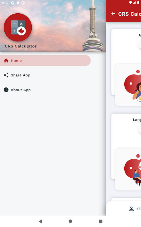 Legal Disclaimer: The CRS Calculator is a tool designed to simplify the CRS score calculation process. It is not a substitute for official government resources. Users are responsible for verifying the accuracy of the CRS score through official channels. The app does not consider individual circumstances and should not be used as the sole resource for immigration advice. The app creators are not liable for any issues arising from the use of this tool or the information provided.