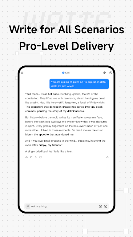 With Kimi’s advanced capabilities, including multi-turn reasoning and intelligent vision, you can tackle everything from programming and writing to deep analysis. Say goodbye to tedious tasks and let Kimi handle it all. Unlock your full potential today with this next-level AI assistant!
