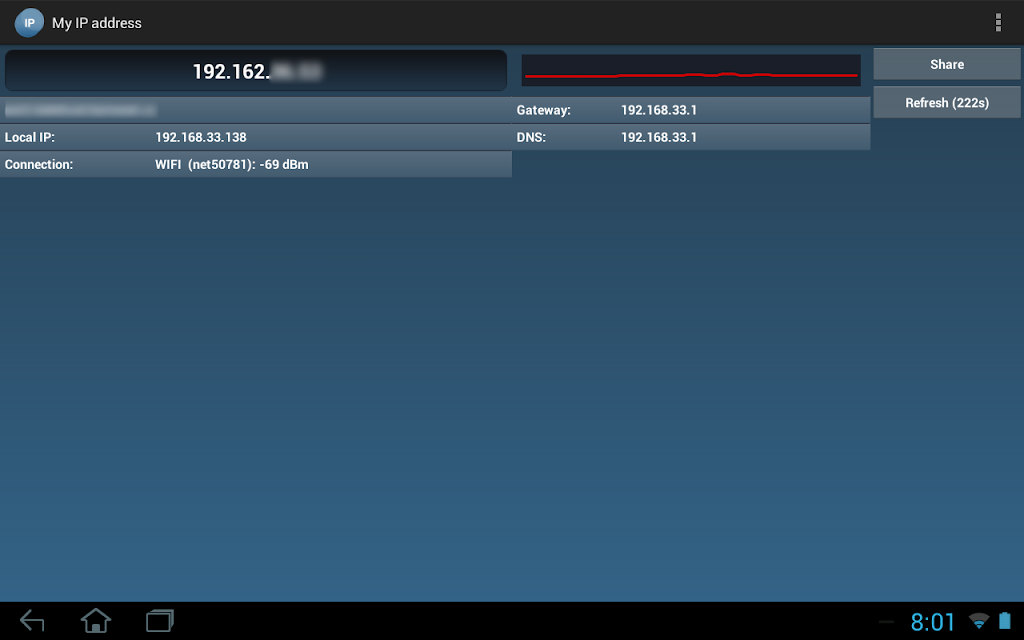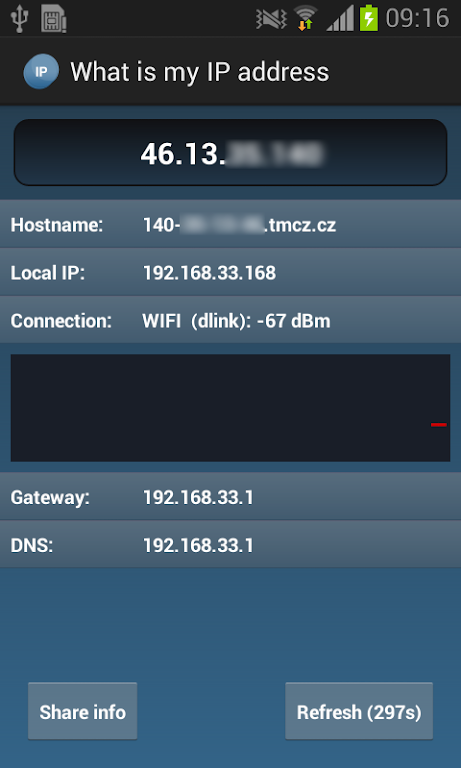 Get information about your external IP (IPv4 and IPv6), hostname, local IP, gateway, and DNS. It also provides signal strength graphs for wireless connections, making it a great tool for troubleshooting and optimizing your network.