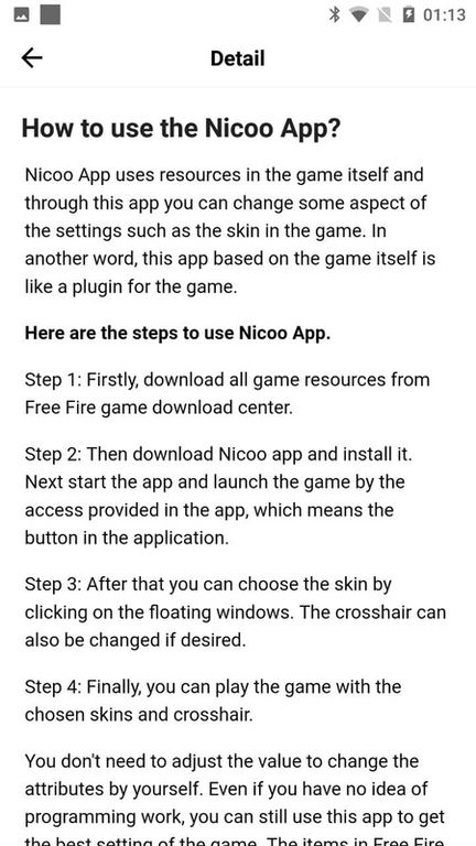 Note: While Nicoo offers a wide range of skins and customization options, it's important to note that this is a third-party app and not officially associated with Free Fire. Using the app may result in the risk of account suspension if detected, so proceed with caution after any game updates.