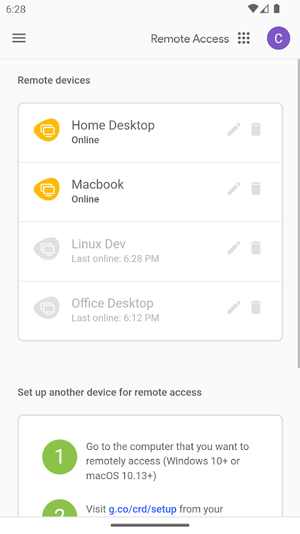 Simply set up remote access on your computer via the Chrome Web Store, and then use the app on your Android device to connect. It's fast, secure, and easy to use, ensuring that you can stay connected and in control of your devices on the go.