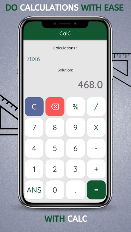 Designed with ease of use in mind, CalC offers all the essential features you need to solve equations in seconds. Whether you're splitting bills, solving math problems, or handling daily calculations, this app is the perfect tool to streamline your tasks. Enjoy seamless functionality and a clean interface, ensuring every calculation is just a tap away.