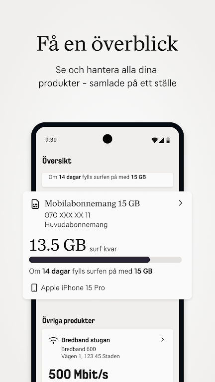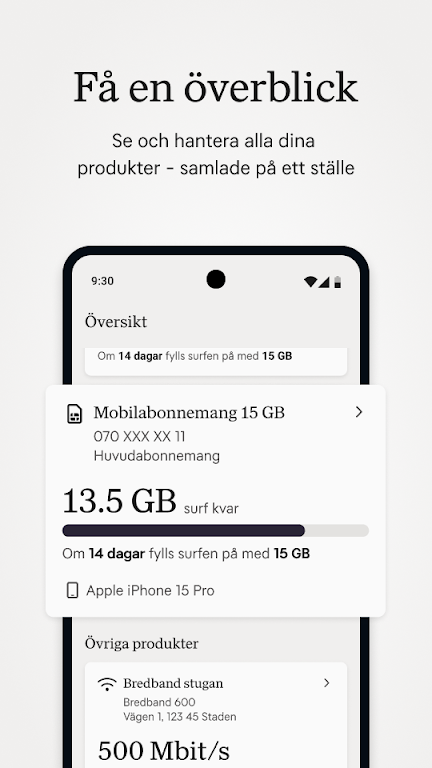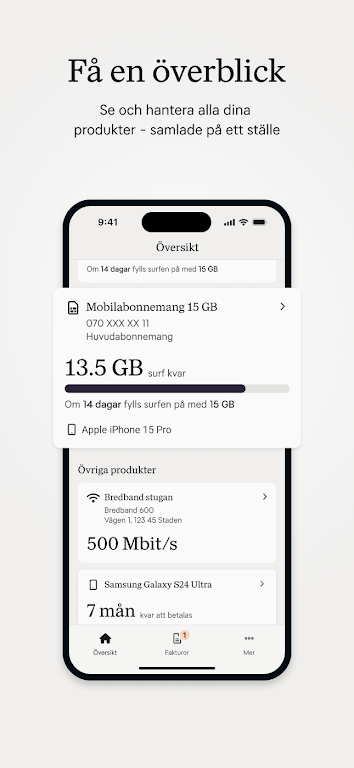 With the Mitt Tele2 app, you can easily monitor your data usage, view billing information, and manage your Tele2 subscription with just a few taps. Whether you need to buy extra data, adjust your subscription, or view hardware payments, the app gives you full control and transparency over your Tele2 services.