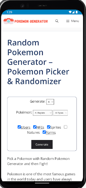 Discover a fun way to generate Random Pokémon based on your own ideas. This app instantly creates unique Pokémon selections and lets you pick random Pokémon to battle. Perfect for casual fans, collectors, and players looking for creative team ideas, strategy inspiration, or quick entertainment.