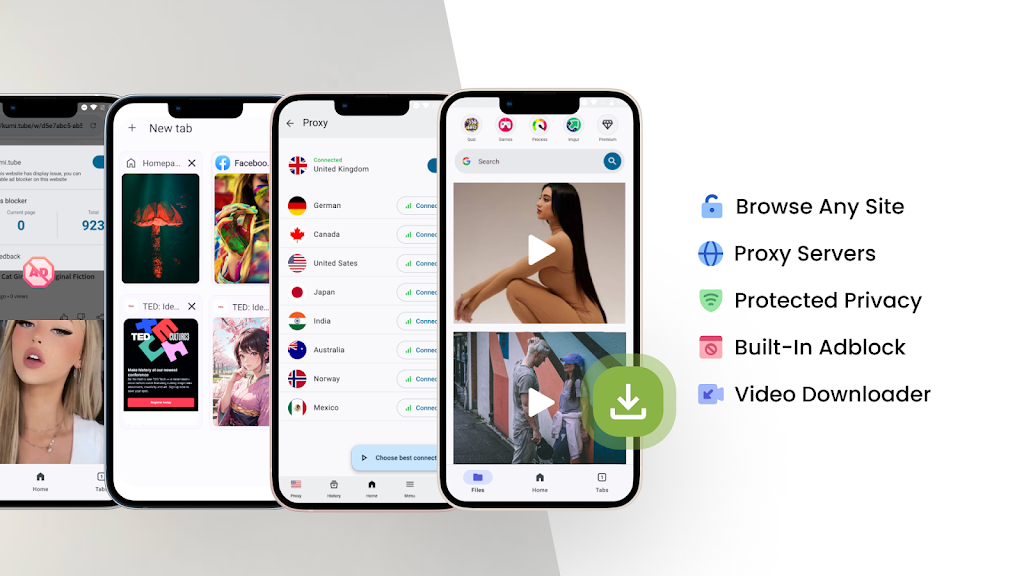 Experience a modern multifunctional web browser designed for fast, secure, and unrestricted surfing. With a built-in video downloader, free adblock, and proxy servers, this browser delivers a smooth and protected experience ideal for everyday use, online streaming, and secure access. Optimized for stability and speed, it’s perfect for users seeking a flexible private browser for Android, mobile data saving, and global content access.