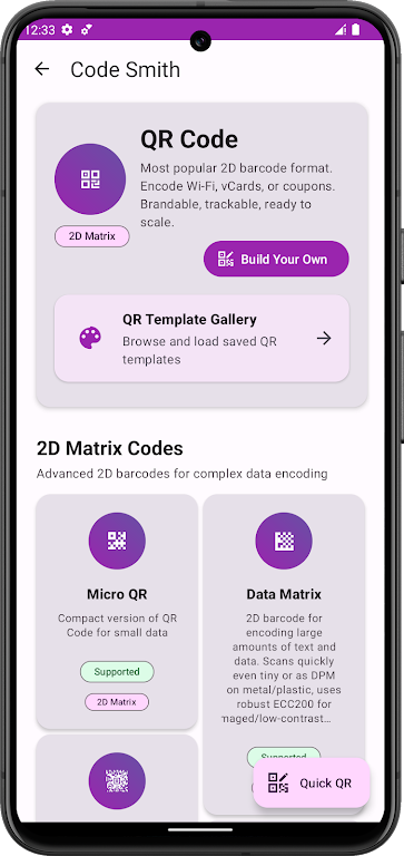 With Scan Me, you'll have access to a wide range of code formats, including popular 1D product and industrial codes, as well as 2D formats like QR codes and Aztec. Unlock seamless scanning and code generation today!
