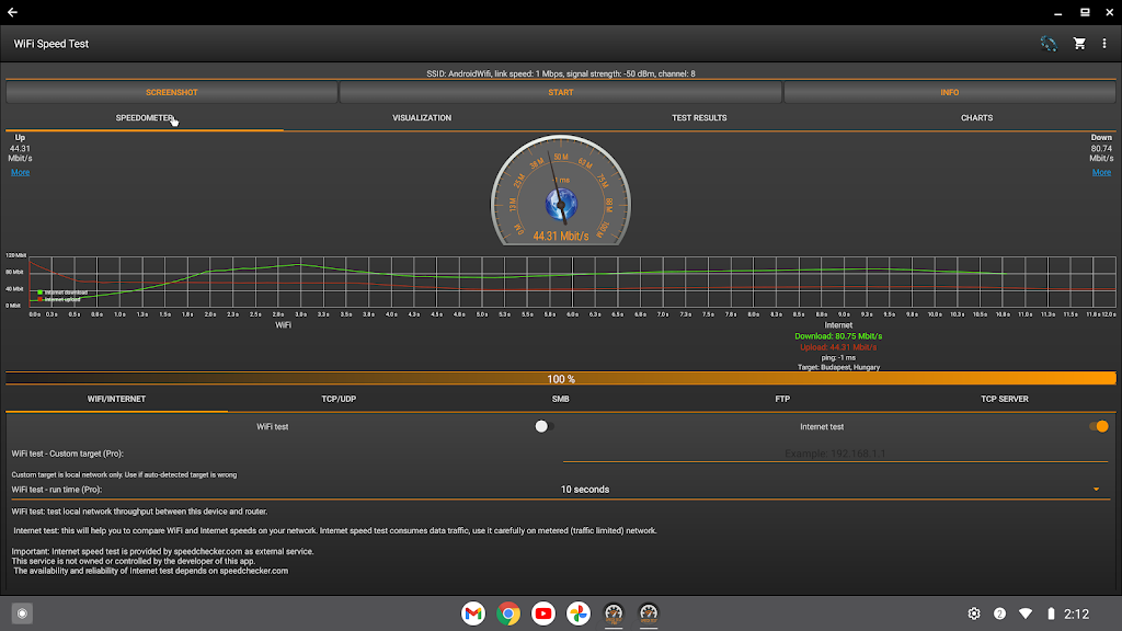 Note: While this app can measure internet speed, its primary focus is to test your local network’s performance. A live internet connection isn’t required for most tests.