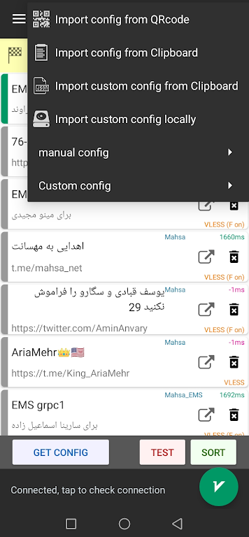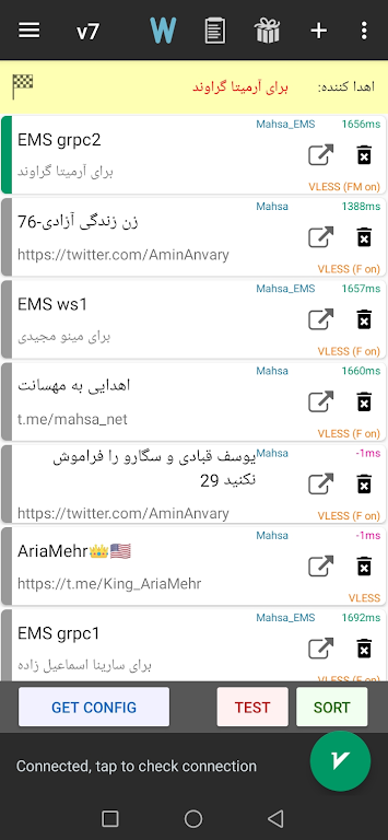 By utilizing third-party VPN configurations provided by "Mahsa Server," MahsaNG intelligently distributes them to users for optimal performance. The app ensures no special permissions are required, and it does not collect any personal data. Enjoy a safe and customizable VPN experience with MahsaNG!