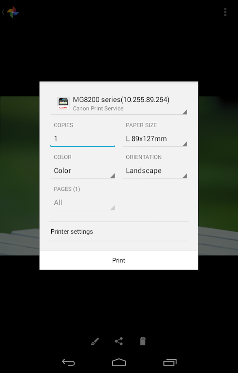 - Go to [Settings] > [Printing] > [Canon Print Service], then enable the service.