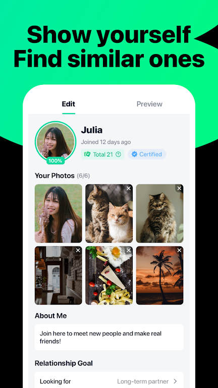 OFO offers a unique social experience, bringing together people who share your passion for K-pop, pets, movies, anime, comics, gaming, and more. It's easy to meet new friends and potential matches by simply swiping, chatting, and connecting. Start conversations that spark chemistry, and who knows – you might just find someone who shares your world!