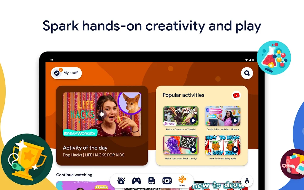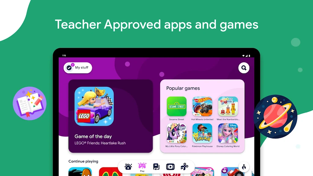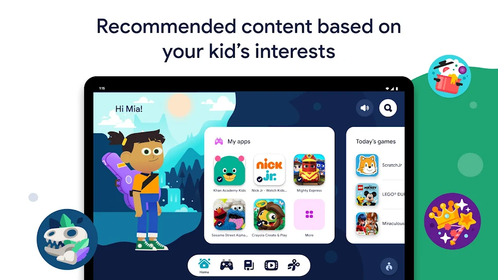 Google Kids Space creates a dedicated tablet experience for children under 9, featuring a custom home screen, curated libraries, and tools that spark creativity. Kids can personalize their space with unique avatars and discover content recommendations tailored to their interests. Designed to boost early learning and digital confidence, it also supports family-friendly goals like safer screen time and structured exploration.