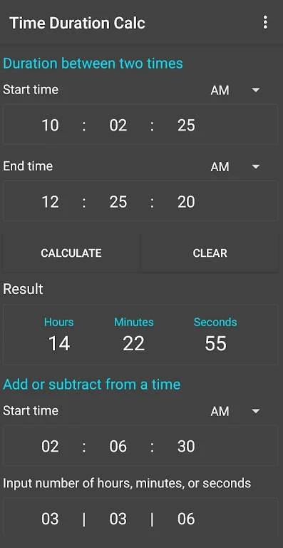 With its intuitive interface, Time Duration Calc allows you to calculate the difference between two times in seconds, minutes, hours, and even days, months, and years. You can also add or subtract specific units of time from any starting point, making it perfect for daily use or more complex time tracking needs.