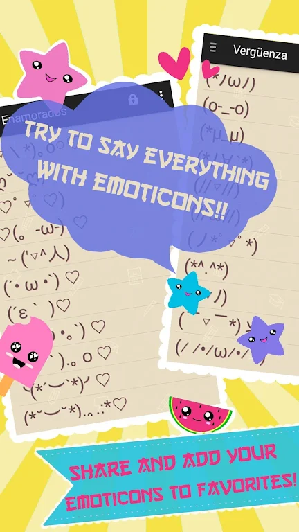 Explore a vast collection of adorable Japanese emoticons (kaomoji) designed to bring joy to your conversations. This easy-to-use app lets you browse through various categories and subcategories to find the perfect kaomoji for any occasion. With one tap, your selected kaomoji is automatically copied to your clipboard and ready to use in text messages, social media, and more!