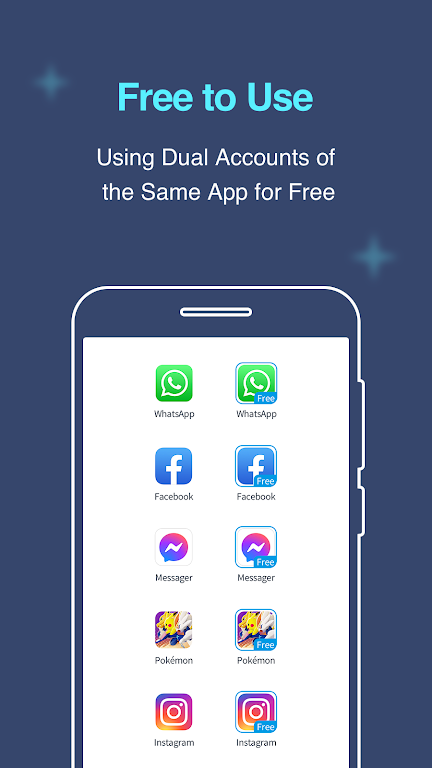 • Resources: Multiple Accounts itself uses no extra memory, battery, or data; cloned apps use their standard resources.