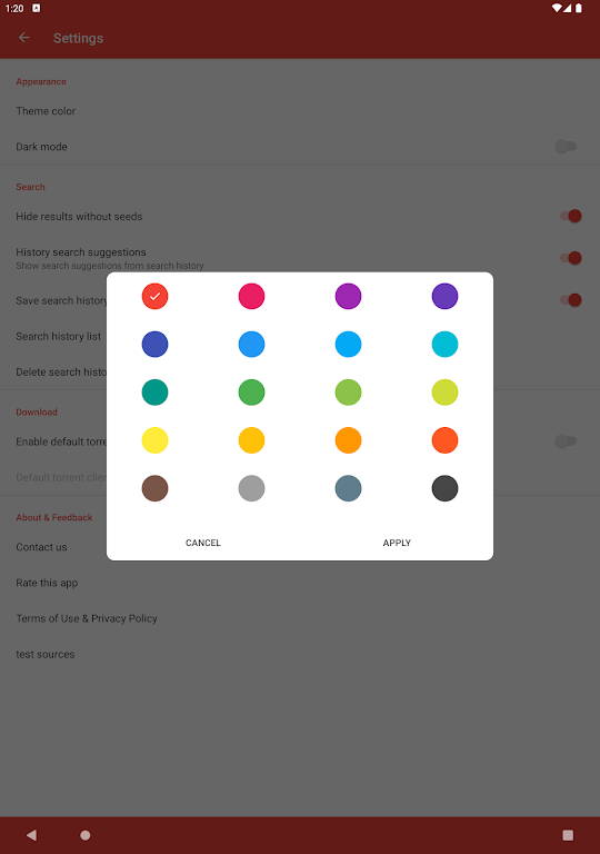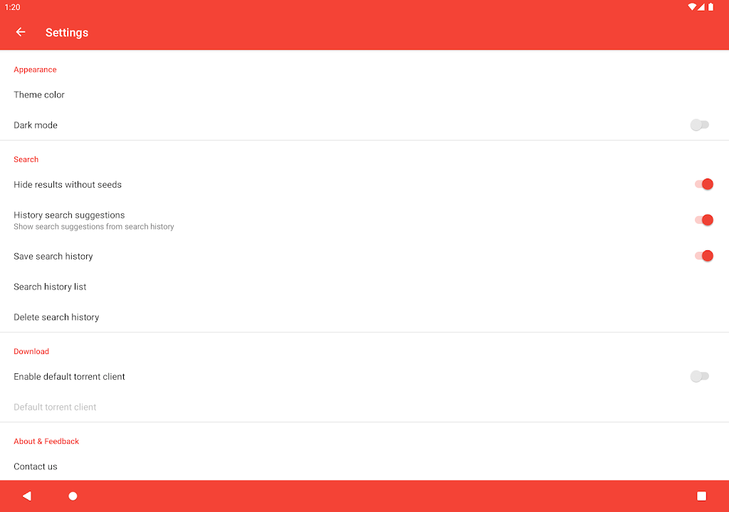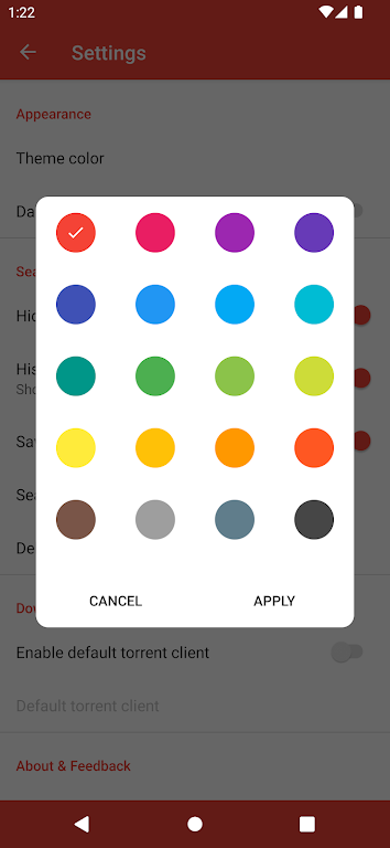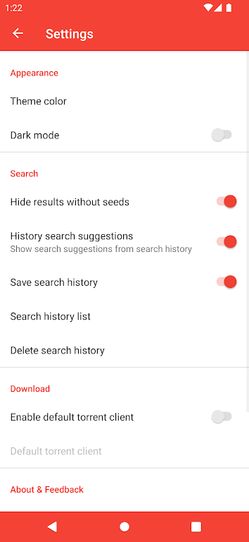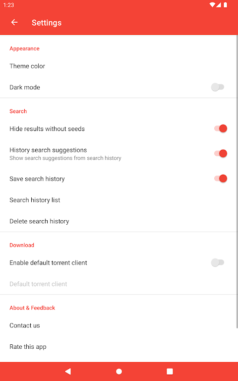 The app allows you to search for torrents across various trusted sources, offering detailed information like title, size, seeds, leeches, and category for every result. With customizable filters and sorting options, you can refine your searches to find exactly what you're looking for. Plus, you can save your favorite torrents and access your search history for easy reference. For a seamless experience, the app also supports voice search and multiple theme color options.