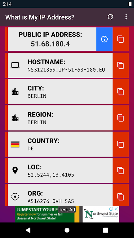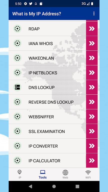Get automatic detection of your external IP (IPv4/IPv6), hostname, provider, and location. Explore your internal network: gateway IP, DNS, subnet mask, access point name, and connected devices. Perform WHOIS lookups, DNS queries, port scans, and speed tests with selectable servers. Everything you need for quick troubleshooting and secure WiFi management.