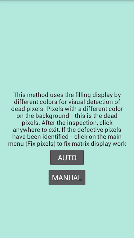 Defective pixels are those that fail to function properly on a liquid crystal display (LCD), leading to a poor viewing experience. If you notice any stuck or dead pixels on your screen, this app provides an easy-to-use tool to try and fix them. Additionally, it can also help with screen burn-in issues, offering multiple repair methods to address stuck pixels or other defects. Simply start the app and let it run on your smartphone or tablet until the problem is resolved.
