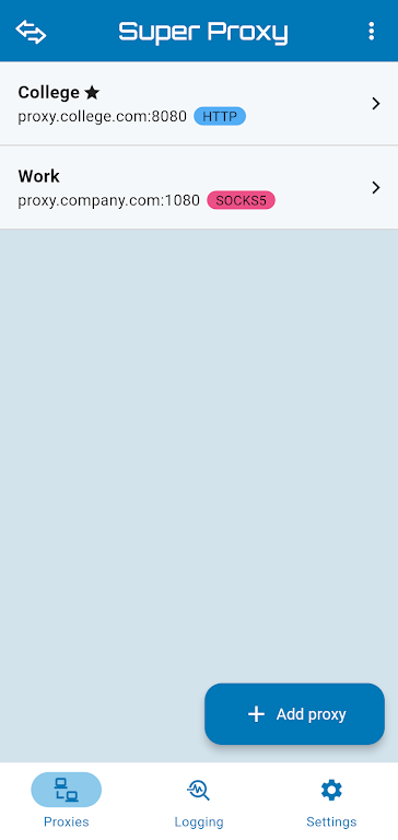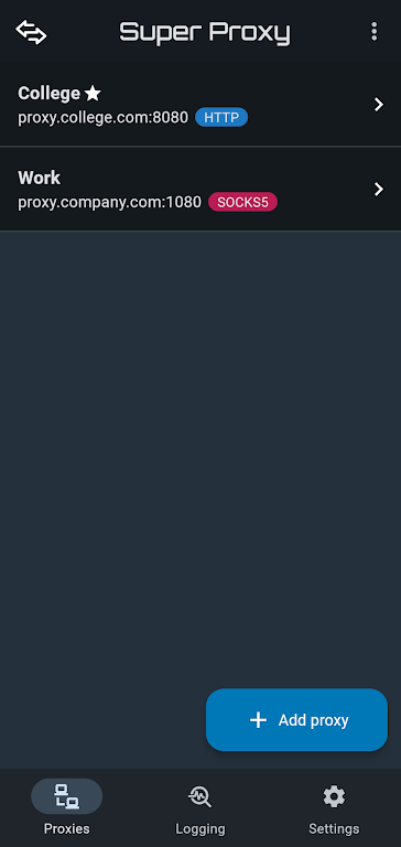 With a local VPN service handling the tunneling process, Super Proxy securely routes your traffic through a proxy server, supporting both SOCKS5 and HTTP proxy connections. This app provides enhanced privacy and browsing freedom by helping you bypass network limitations and accessing content from anywhere.