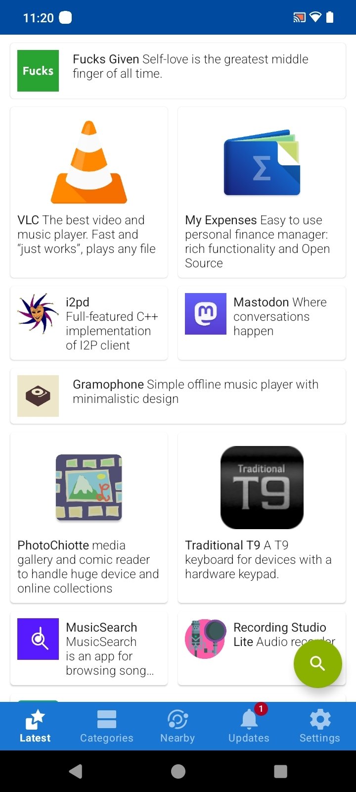 **Key Features:** - Free & Open-Source Apps: Access hundreds of apps with no cost or hidden fees. - Customizable & Transparent: View and edit the source code of every app. - Simple Interface: Navigate easily between available apps, installed apps, and updates. - Privacy-Focused: No ads, no trackers—just open, user-controlled software. - Regular Updates: Stay up to date with the latest open-source apps and features.App Size: 12 MBApp Version: 1.23.1