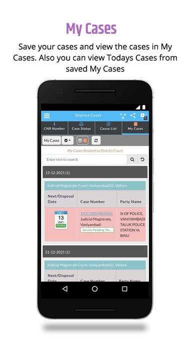 Access comprehensive information on Cases filed across Subordinate Courts and most High Courts nationwide. Designed for quick legal lookup, portfolio management, and daily case tracking, this app offers seamless navigation for citizens, litigants, lawyers, police, government agencies, and institutional users. It also integrates high-traffic legal search keywords like “digital court case tracker,” “online legal case status check,” and “real-time court updates.”