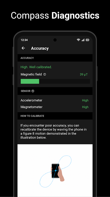 This app requires a working magnetometer and accelerometer for compass functions. It uses your device’s magnetometer, gyroscope, and GPS sensors to deliver accurate readings.