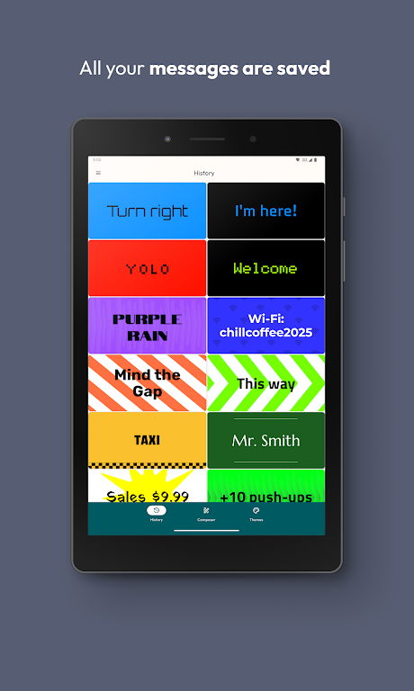 Use it for airport pickups, sharing directions, ordering in loud venues, concerts, taxis, or communicating with deaf, hard-of-hearing, nonverbal, or neurodivergent individuals. Perfect for real-time visual messaging, hands-free communication, and fast on-screen text — even in crowded or noisy places.