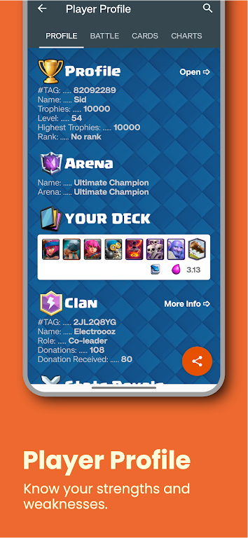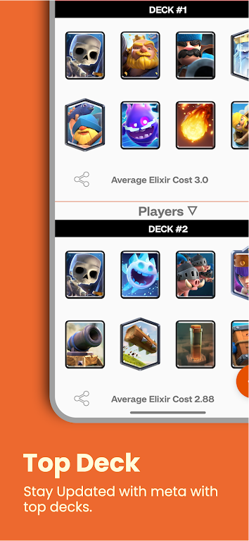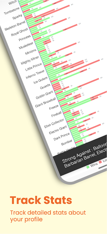 Level up your Clash Royale experience with a fast, reliable real-time deck tracker for mobile, complete with competitive clan war analytics and an easy strategy guide for card battlers. Explore data you can't see in the official app and optimize every match.
