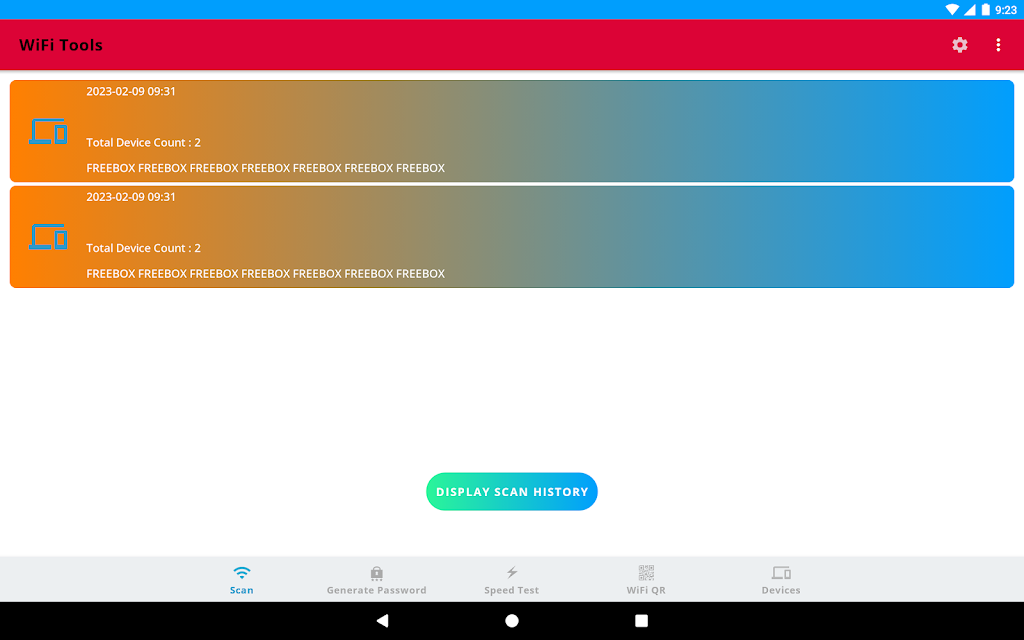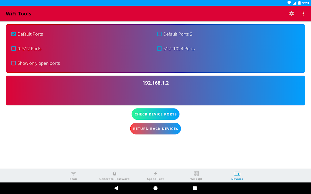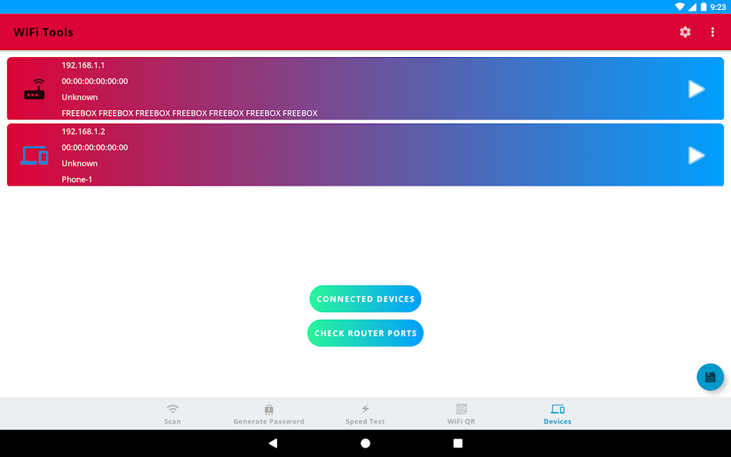 Note: On Android 13+, MAC addresses cannot be retrieved — only IP addresses and device names are displayed.