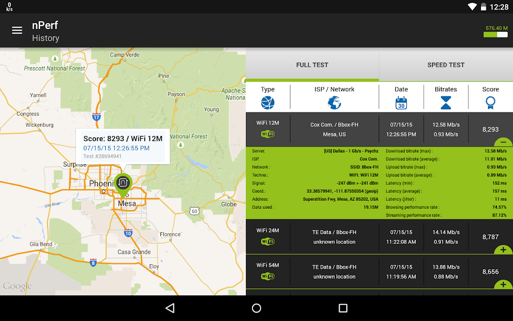 nPerf also helps you stay in control of your data usage. Track your mobile data consumption and avoid exceeding your monthly limits with built-in notifications. All tests are stored in your personal history, so you can monitor network performance over time, and share results with friends or social networks for easy reporting. Best of all, testing with nPerf uses up to 2x less data than competing apps!