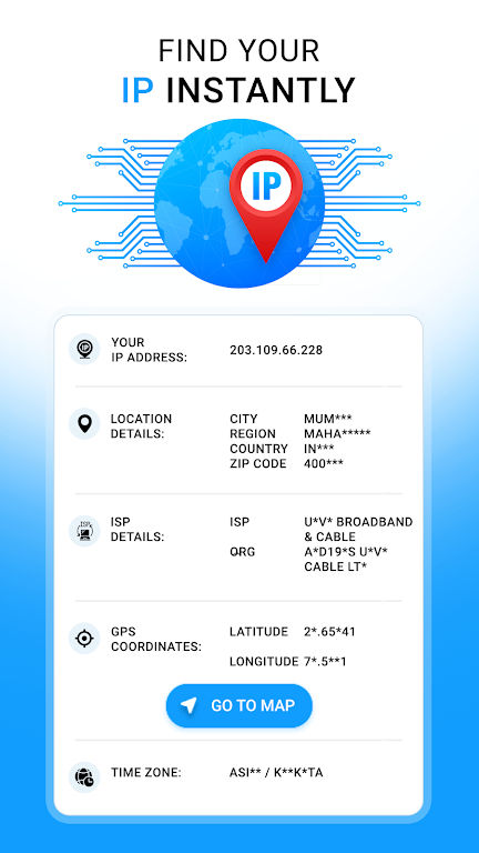 IP Location & Info Tracker is your go-to tool for discovering detailed information about any IP address globally. Whether you're a network administrator or simply curious, this app provides accurate details like GPS coordinates, latitude, longitude, and more. Easily track the location of any IP address, including the city, country, region, and zip code. Stay informed about your own IP address or explore any address worldwide.