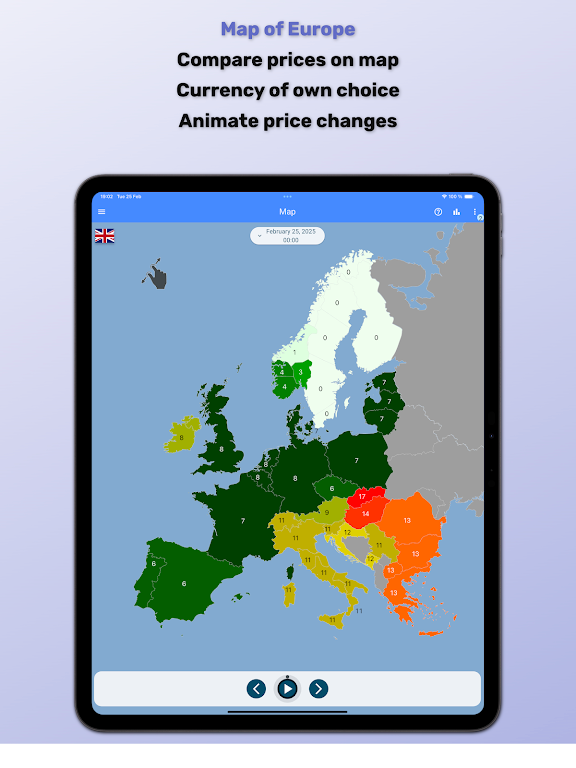 Currently, the app covers the following countries: Norway, Sweden, Denmark, Finland, Estonia, Lithuania, Latvia, Austria, Belgium, Germany, Luxembourg, France, Netherlands, Poland, Bulgaria, Croatia, Czech Republic, Greece, Hungary, Italy, Portugal, Romania, Serbia, Slovakia, Slovenia, Spain, and Switzerland.